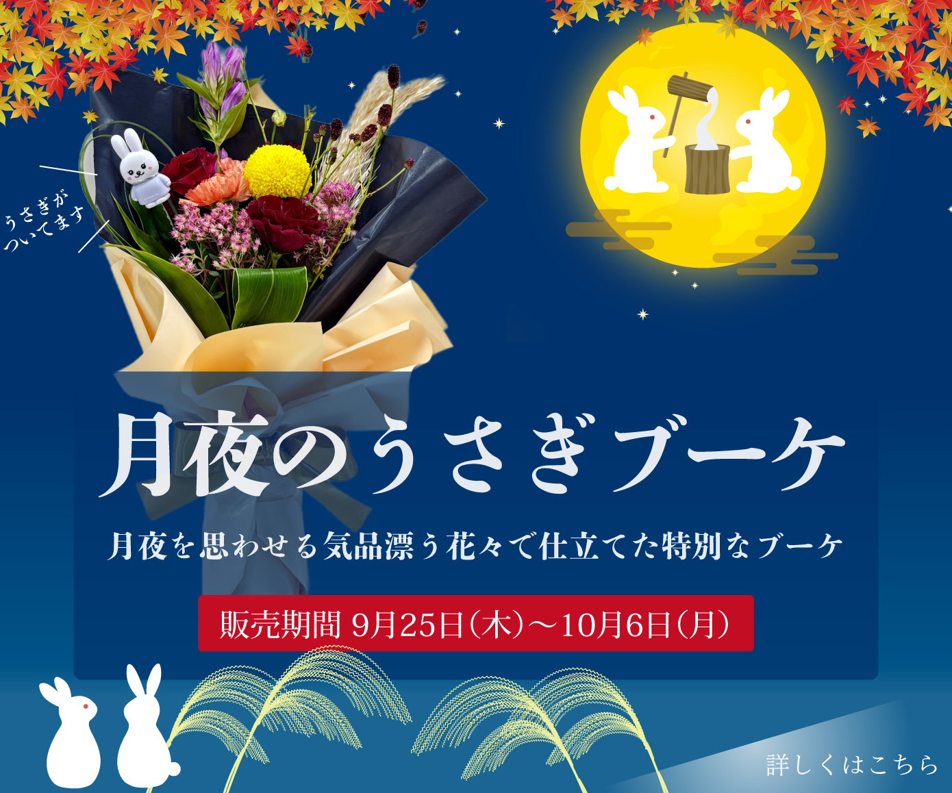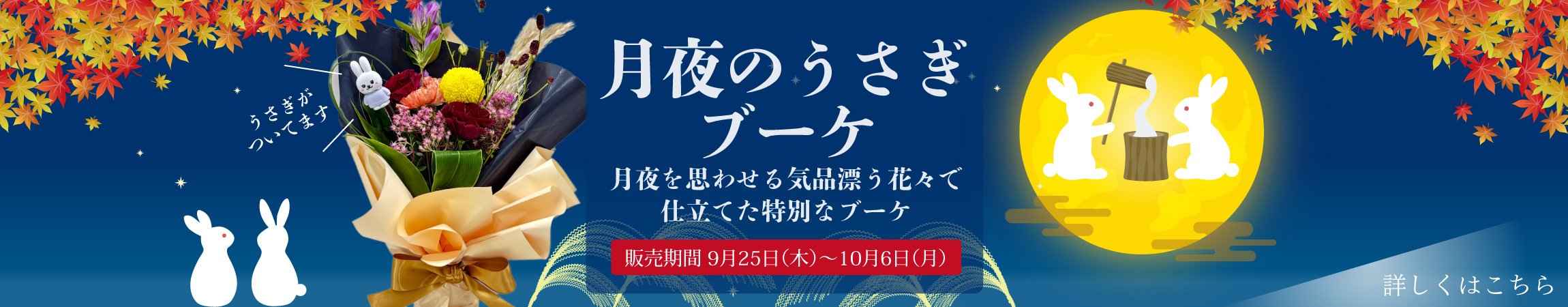 【秋のお月見!】月夜のうさぎブーケ・月夜を思わせる気品漂う花々で仕立てた特別なブーケ